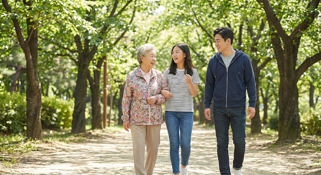 - 듀얼 태스크(Dual-task) 걷기: 단순히 걷기만 하는 것은 부족합니다. 걸으면서 끝말잇기나 옛날 이야기를 하는 것과 같이 운동과 인지를 동시에 수행하는 것이 바람직합니다. 그래야 전두엽의 혈류량이 극대화되기 때문입니다.